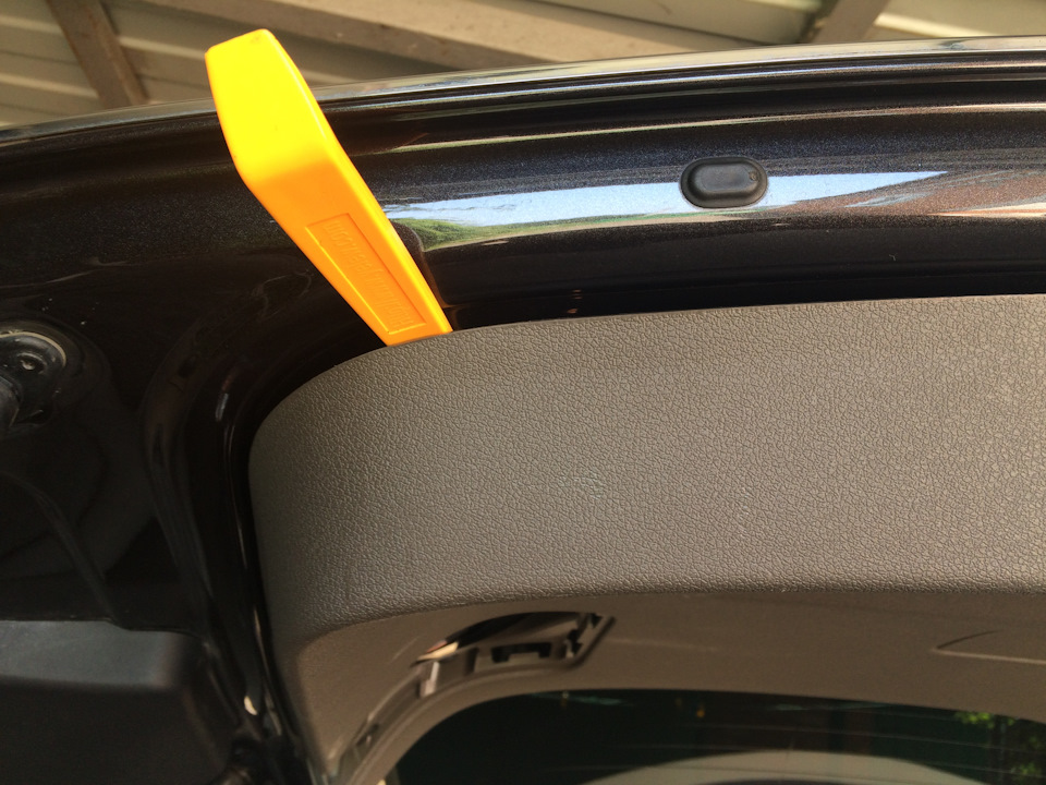 3. Поддеваем специальными лопатками панель и аккуратно отщелкиваем заглушки, не бойтесь их сломать они металлические. Как отщелкните все заглушки, необходимо будет отсоединить провода от кнопки открывания багажника и от плафона подсветки багажника.