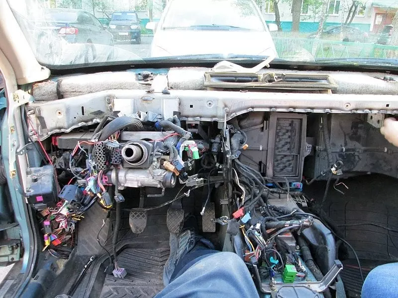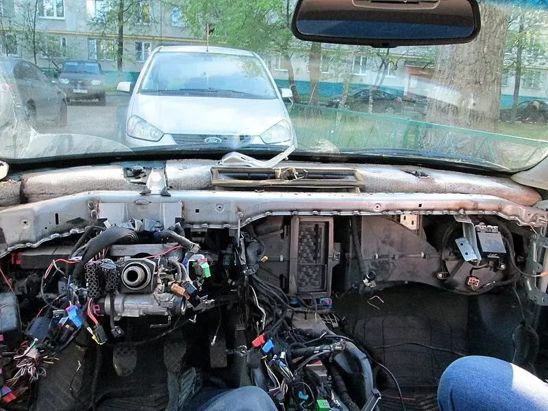 Начать стоит с задней и центральной консоли, она проста для понимания и в книгах описано, как ее разобрать. Далее снимаем подножку, перчаточный ящик и руль. На руле у меня подушка была прикручена двумя болтами (звездочка). Далее идет борода. (Mognitola, кнопки и т.д.) нити нельзя подписать кнопками, потому что их нельзя продеть в другое гнездо, и все они цветные. Ну, я подписал каждую нитку, наклеил полметра изоленты с текстом, откуда она пришла, цель была не забыть приклеить заново, так как нитки там ужасные. Снимаем разобрано, опора вообще на двух болтах, вытаскивается легко. Ну вот и все, для запуска осталась только одна крышка (торпеда), откручиваем два болта по краям, где предохранители и соответственно со стороны пассажира такие же. Затем откручиваем все, что держит подушку пассажира на каркасе усиления. Затем там, где была борода, есть еще три дротика, удерживающие торпеду. Ну вроде все, можно торпеду на себя тащить. Когда я принимал его радость не было предела, я думал, все аплодируют, но не было. За торпедой находится каркас жесткости, который также мешает нормальной работе. Снимаем это. Держится только по бокам и там, где есть бороды-проводники. Но перед тем, как снимать его, вы должны отвинтить от него рулевую колонку, и она упадет прикрепленной и отсоединит все провода, которые к ней подключены. После снятия каркаса жесткости печку можно будет легко вытащить. Это печь, вся конструкция расплавилась. Необходимо только отсоединить две трубы от радиатора отопителя под капотом и открутить металлические патрубки от кондиционера. Антифриз не стекал, но стечь фреону пришлось. Когда снял шланги с радиатора, антифриза не вышло больше литра. Ну это в принципе, все в обратном порядке. Вроде бы ничего сложного. Что ж, когда разбираешься во всем и смотришь, ужас понимает. Ну как говорится, глаза страшны рукам.