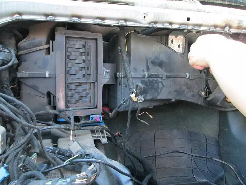 Перед проведением демонтажных операций с электроприборами необходимо откинуть клеммы АКБ. Далее удаляем вещевой ящик (бардачок) и начинаем работу с электродвигателем привода обогрева стекол.