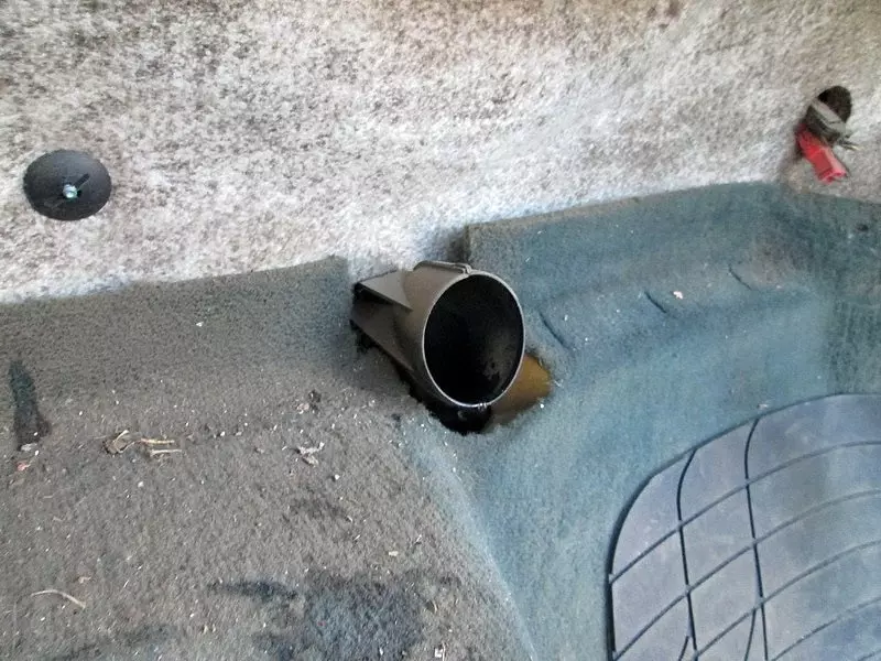 22) вытаскиваем воздуховоды на ноги задних пассажиров (отверстия лучше заткнуть тряпками, в них любят падать болты)