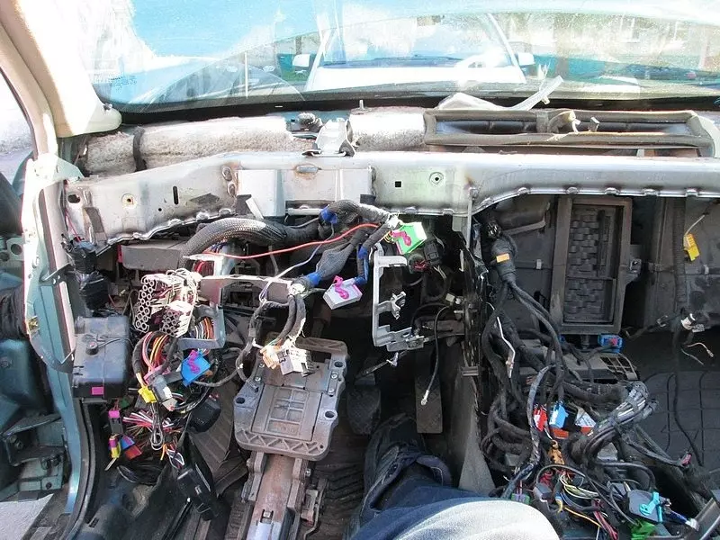 Отключаем штекеры сервоприводов в салоне (их 3 — два впереди и один слева), и ещё один тонкий чёрный штекер слева