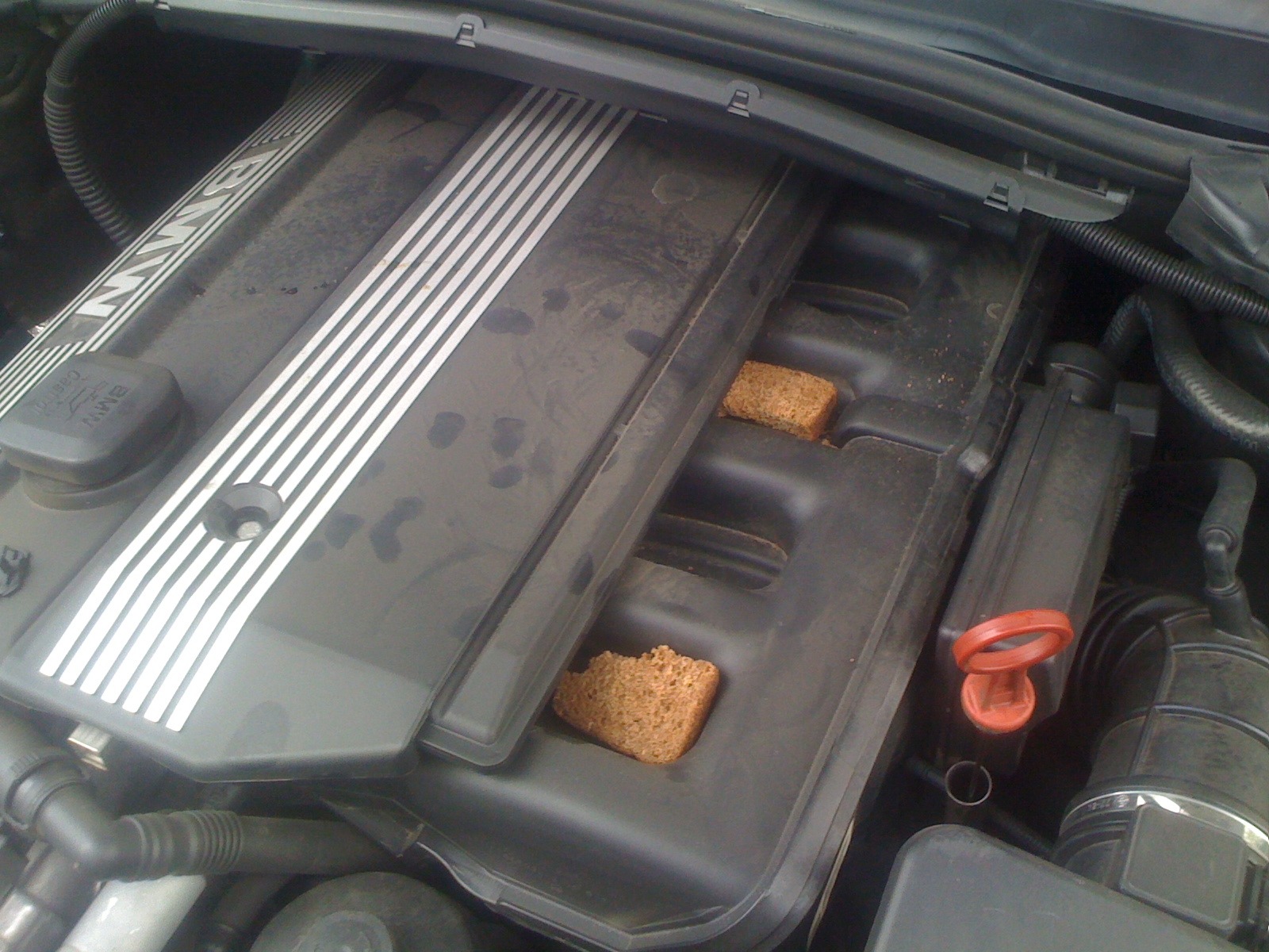 Да видать с корешем забухали в гараже перед открытым капотом и забыли закусь убрать …